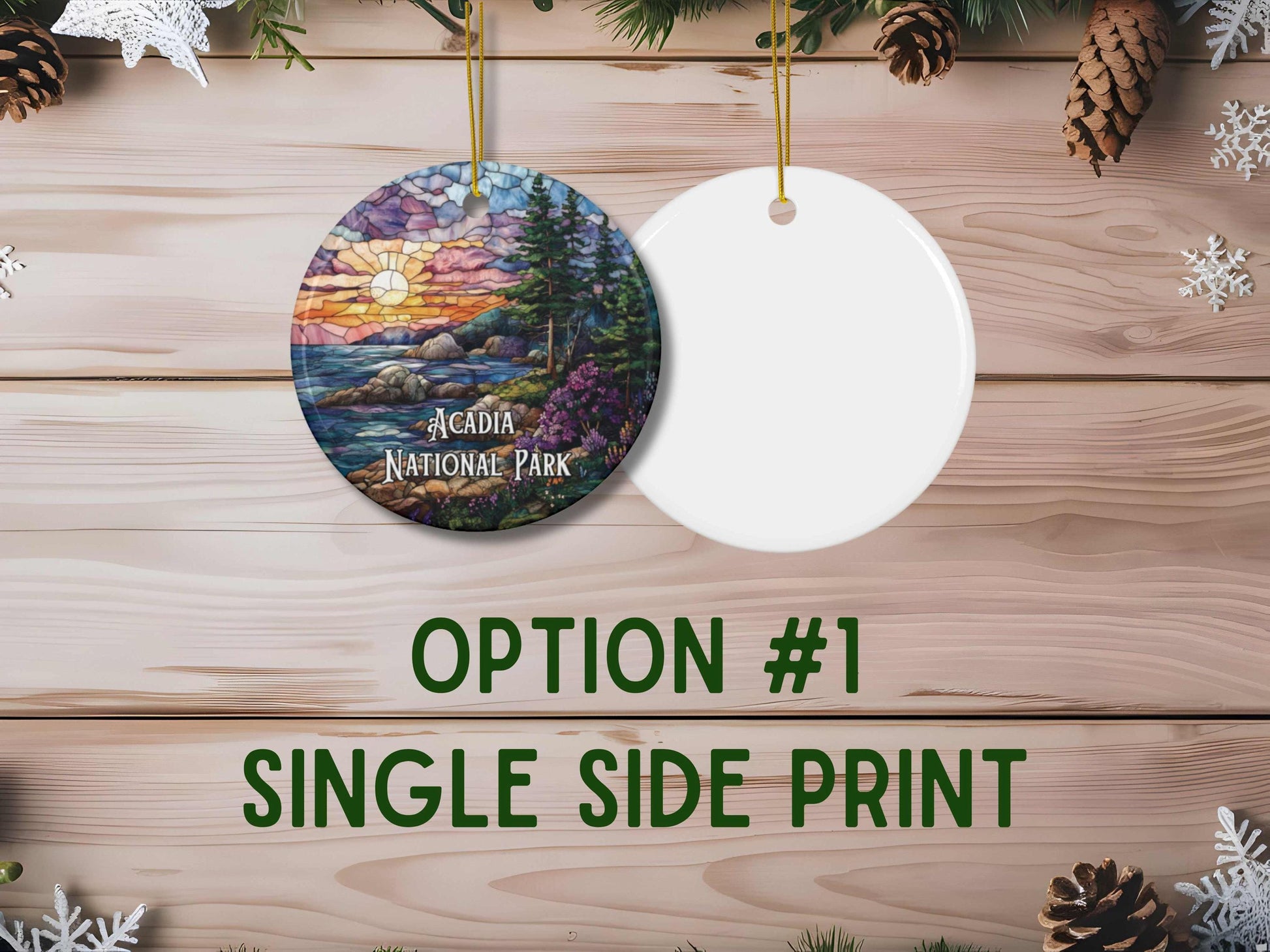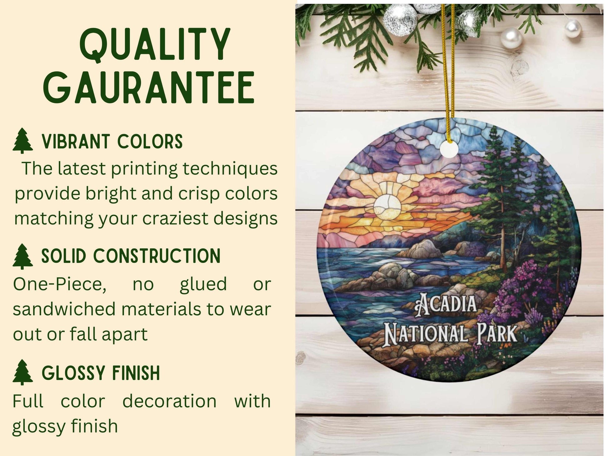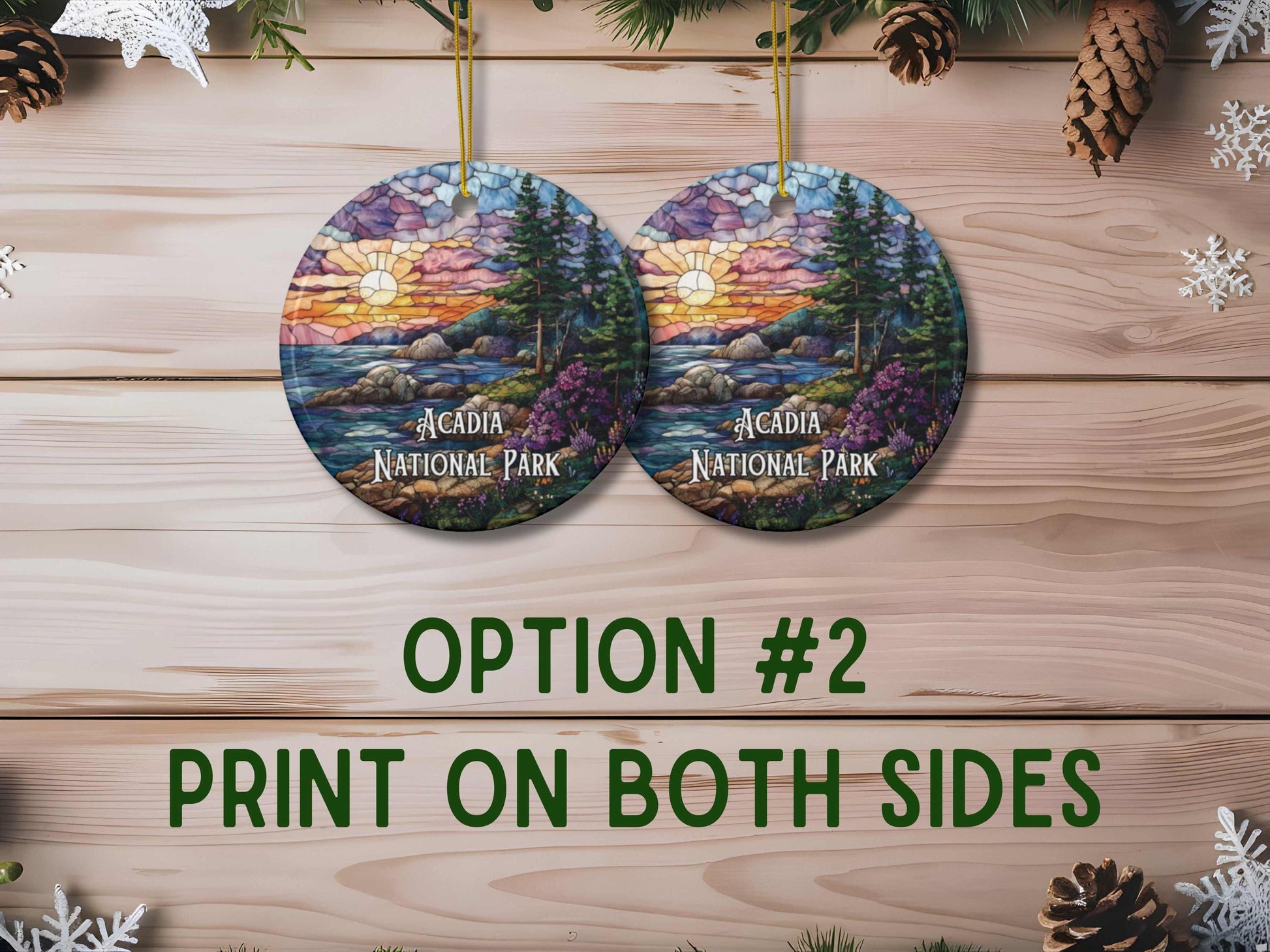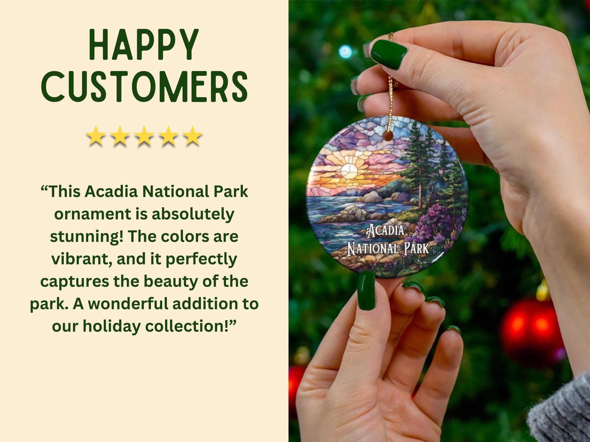 Stunning Acadia National Park ornament with a vibrant coastal sunrise scene, capturing the beauty of Maine's rugged shoreline and natural splendor.We will personalize, just let us know what you would like printed your ornament.