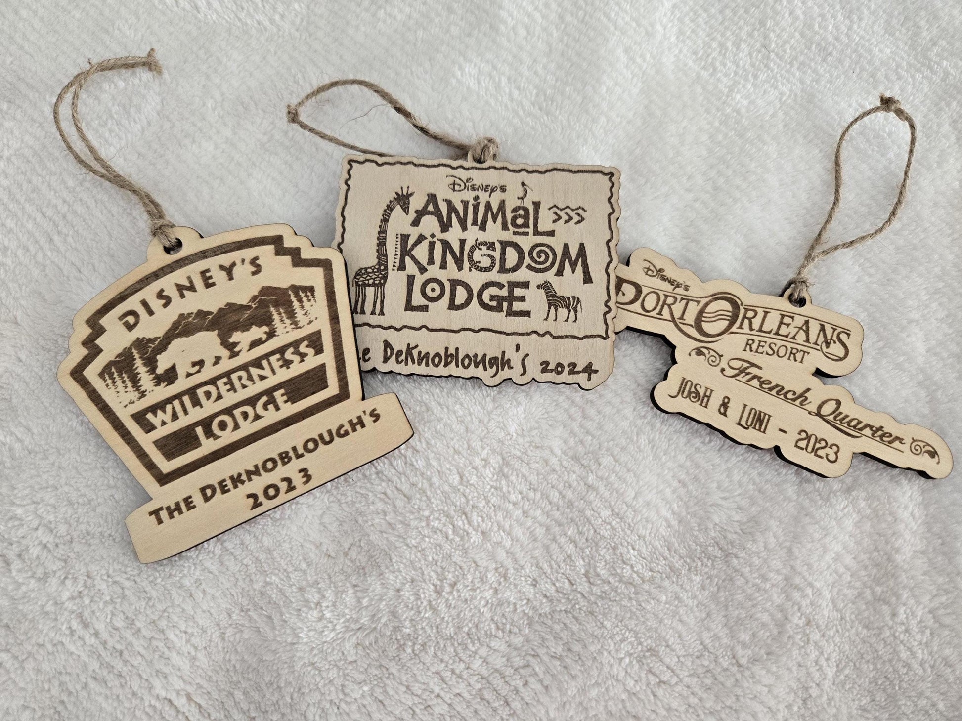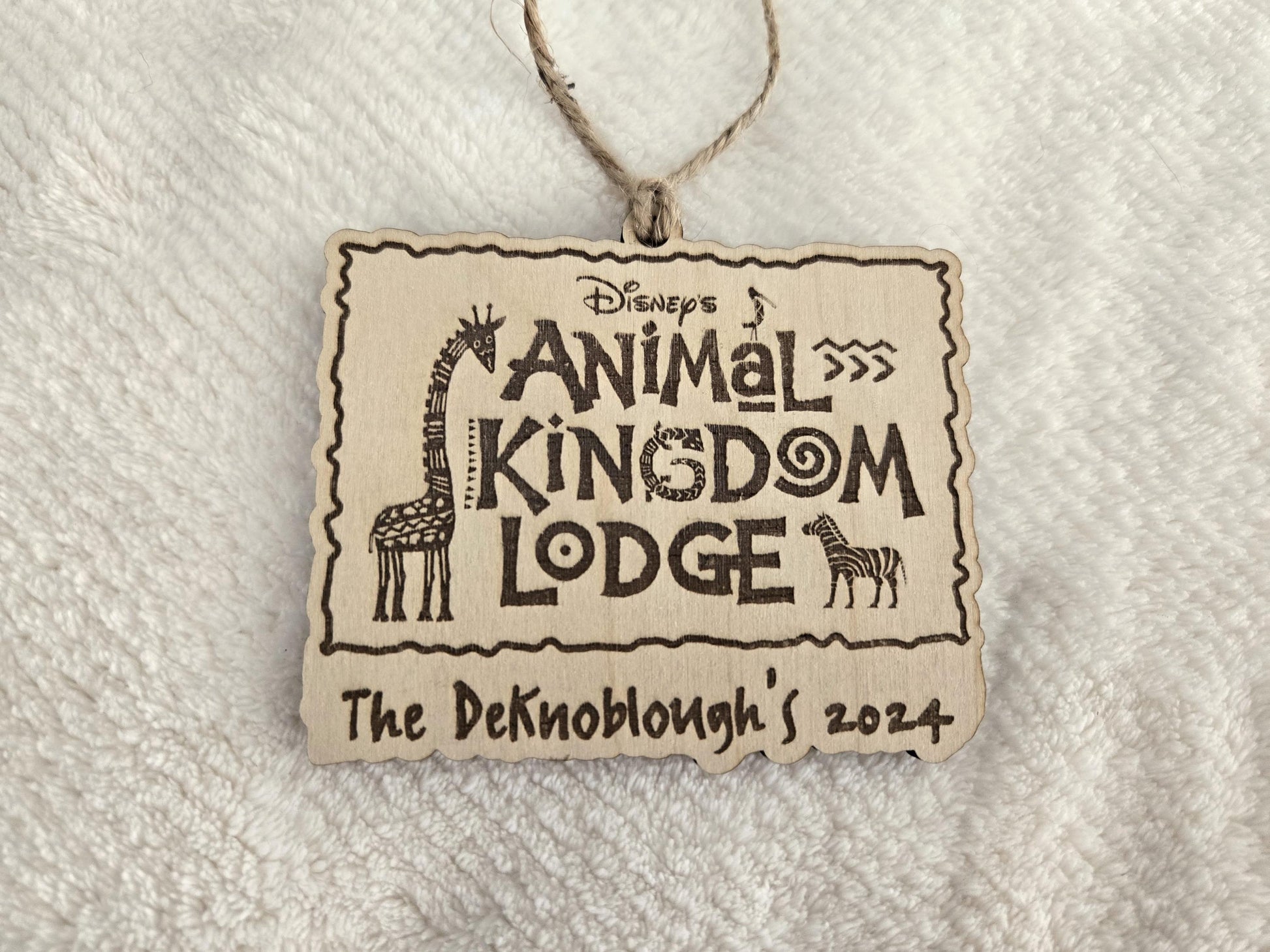 Personalized Animal Kingdom Lodge Ornament. Perfect for remembering your trip to Walt Disney World. Personalize with name, date, and theme park that you would like.