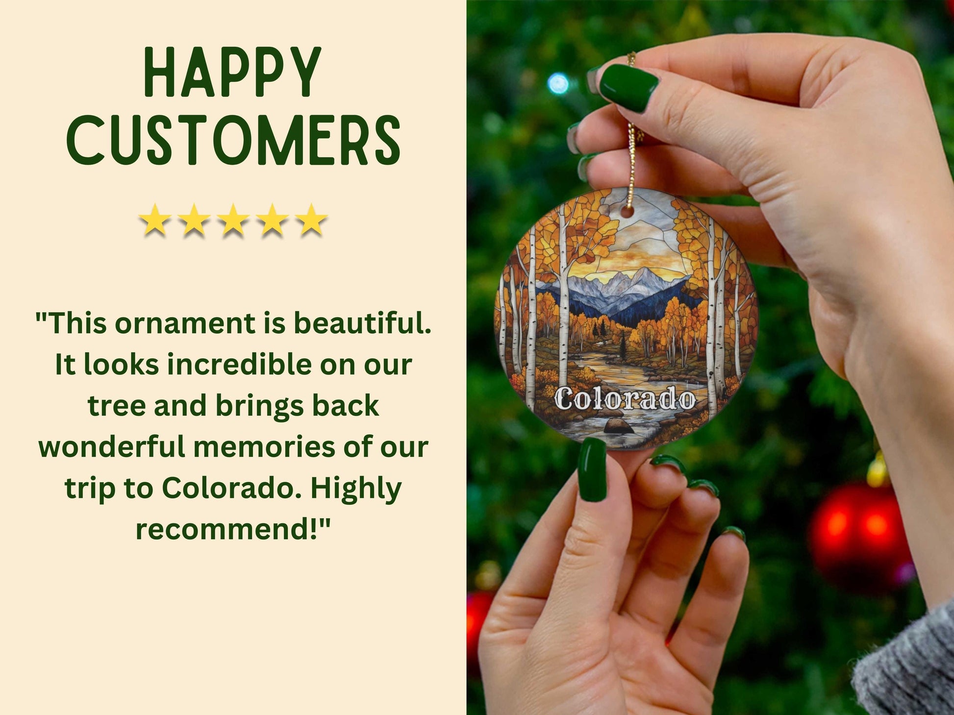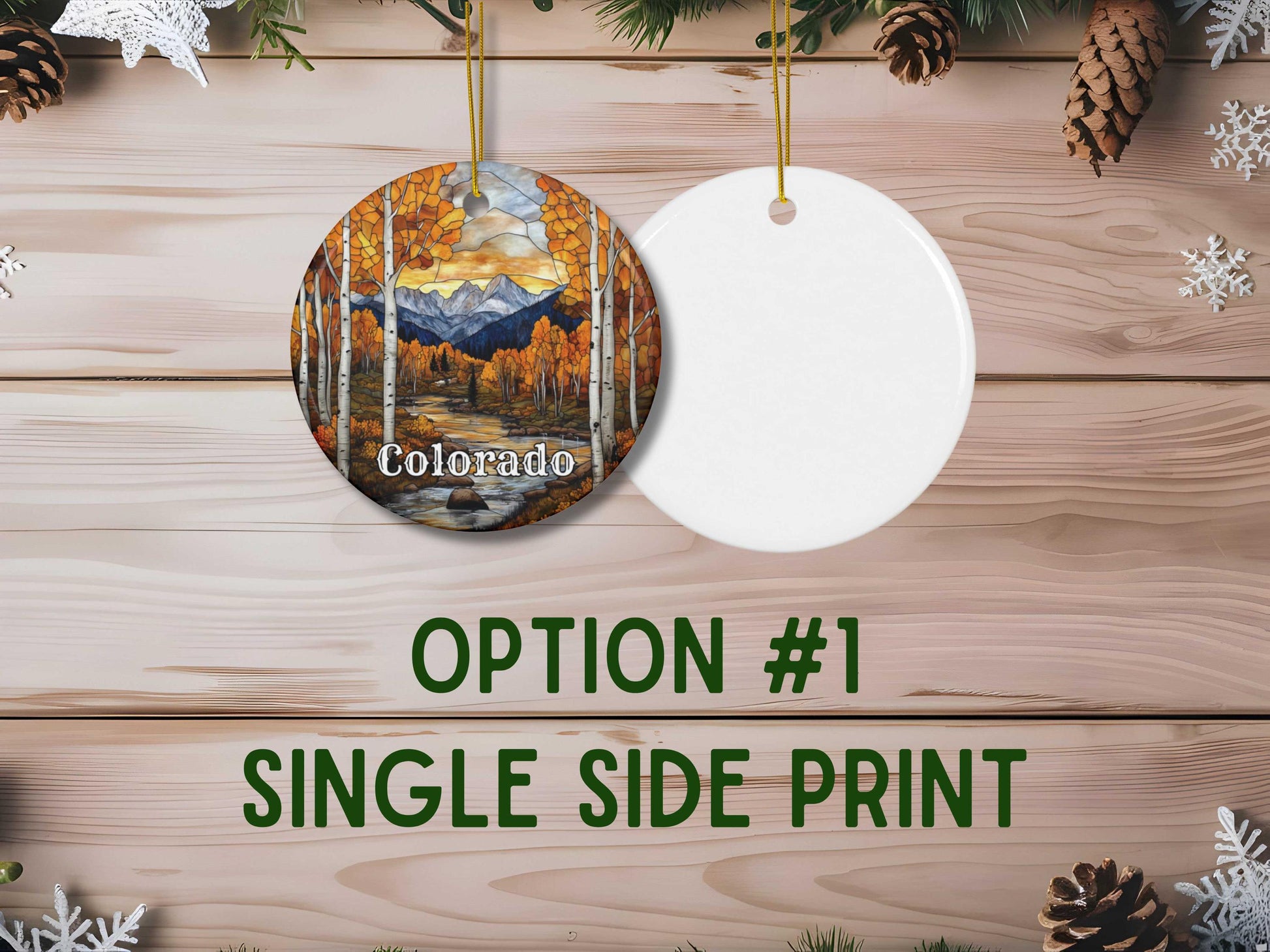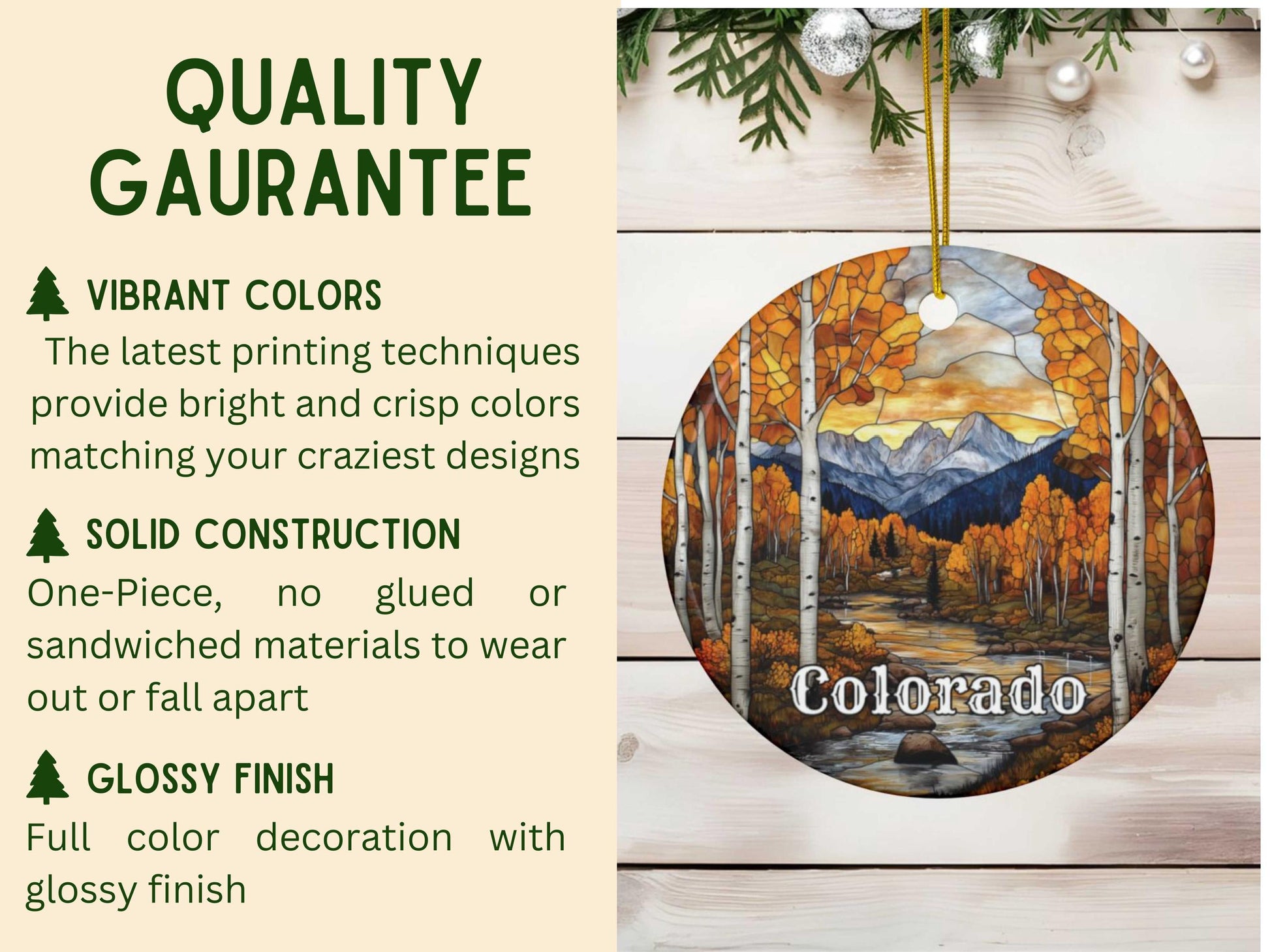 Capture the vibrant beauty of the Colorado Mountains with this stunning stained glass style ornament.