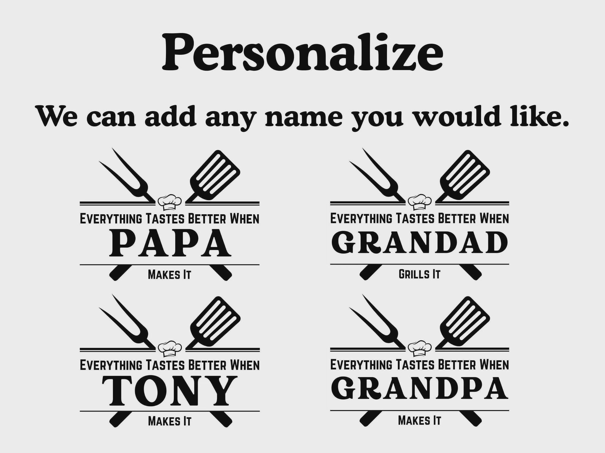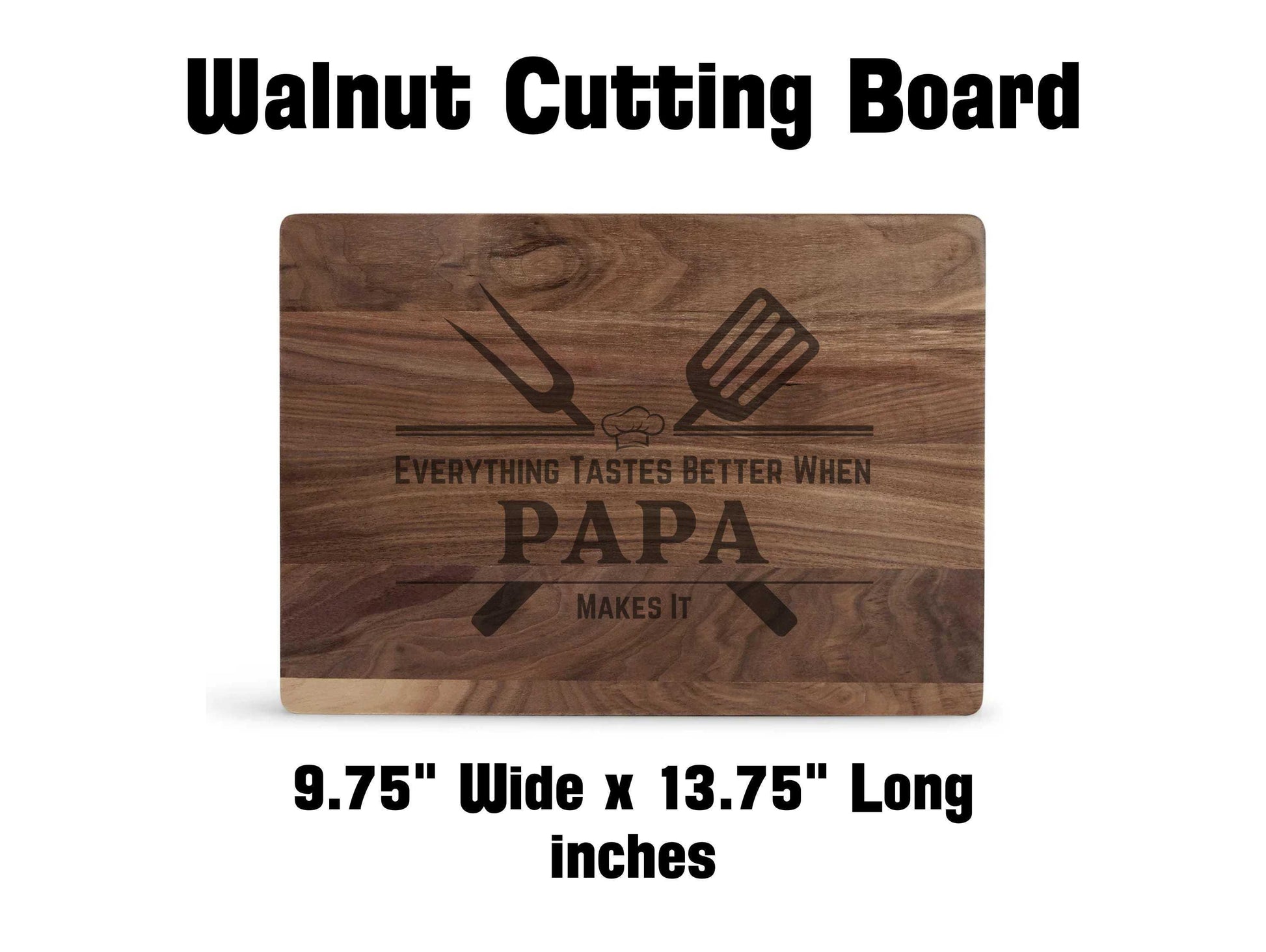 Celebrate Dad, Papa, Grandpa, or any special father figure with this personalized cutting board – a perfect Father’s Day gift! Expertly crafted and engraved, each board features the phrase “Everything Tastes Better When [Your Custom Text] Makes It,” making it a heartfelt and practical gift for the grill master or kitchen king in your life.