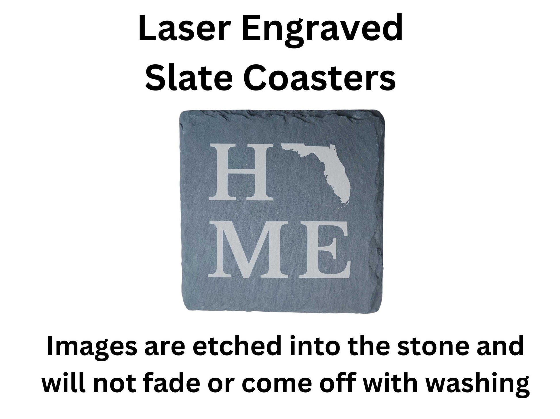 Four engraved Florida Home State stone drink coasters! Choose between round or square coasters. Perfect for housewarming gifts.