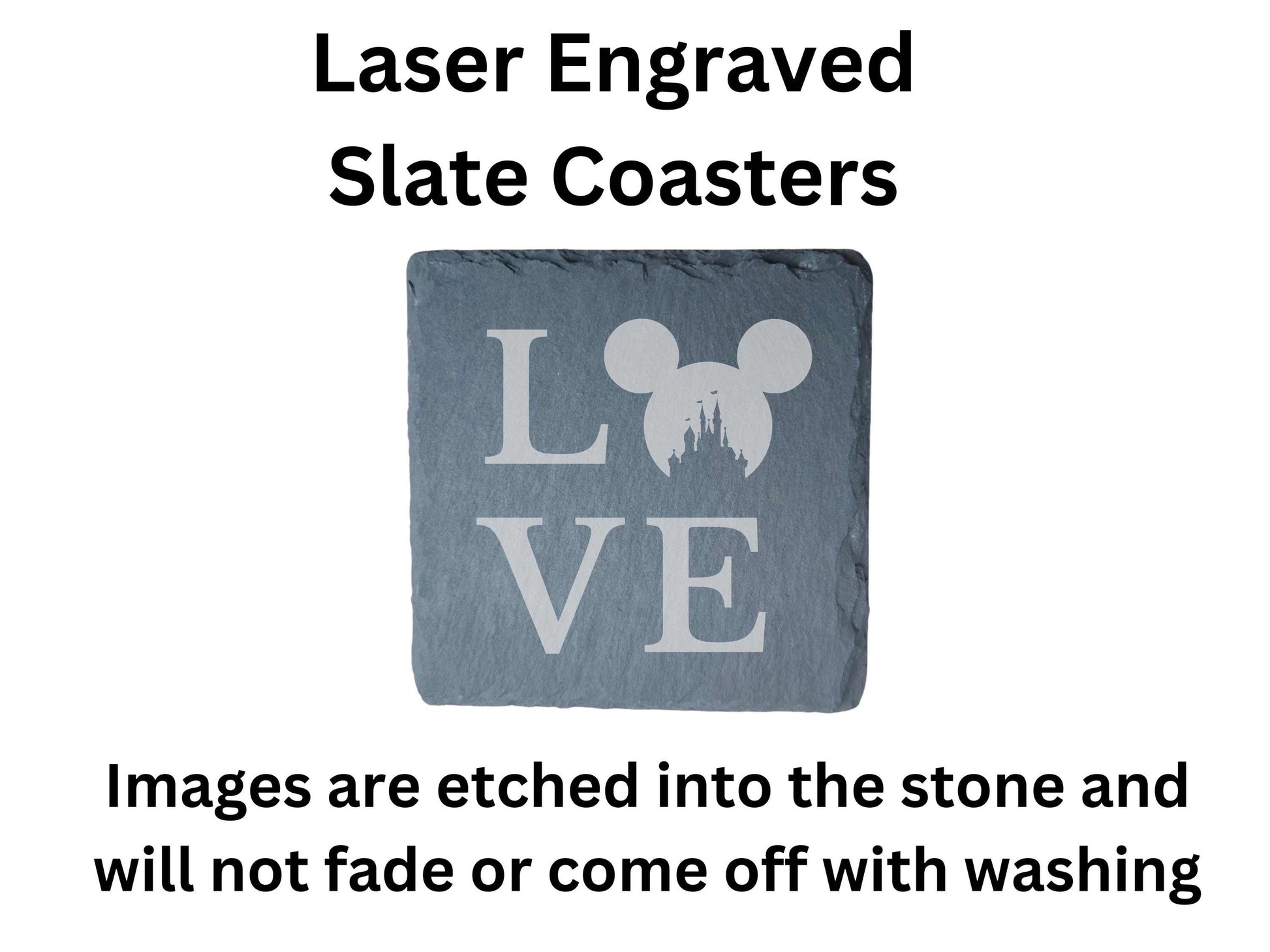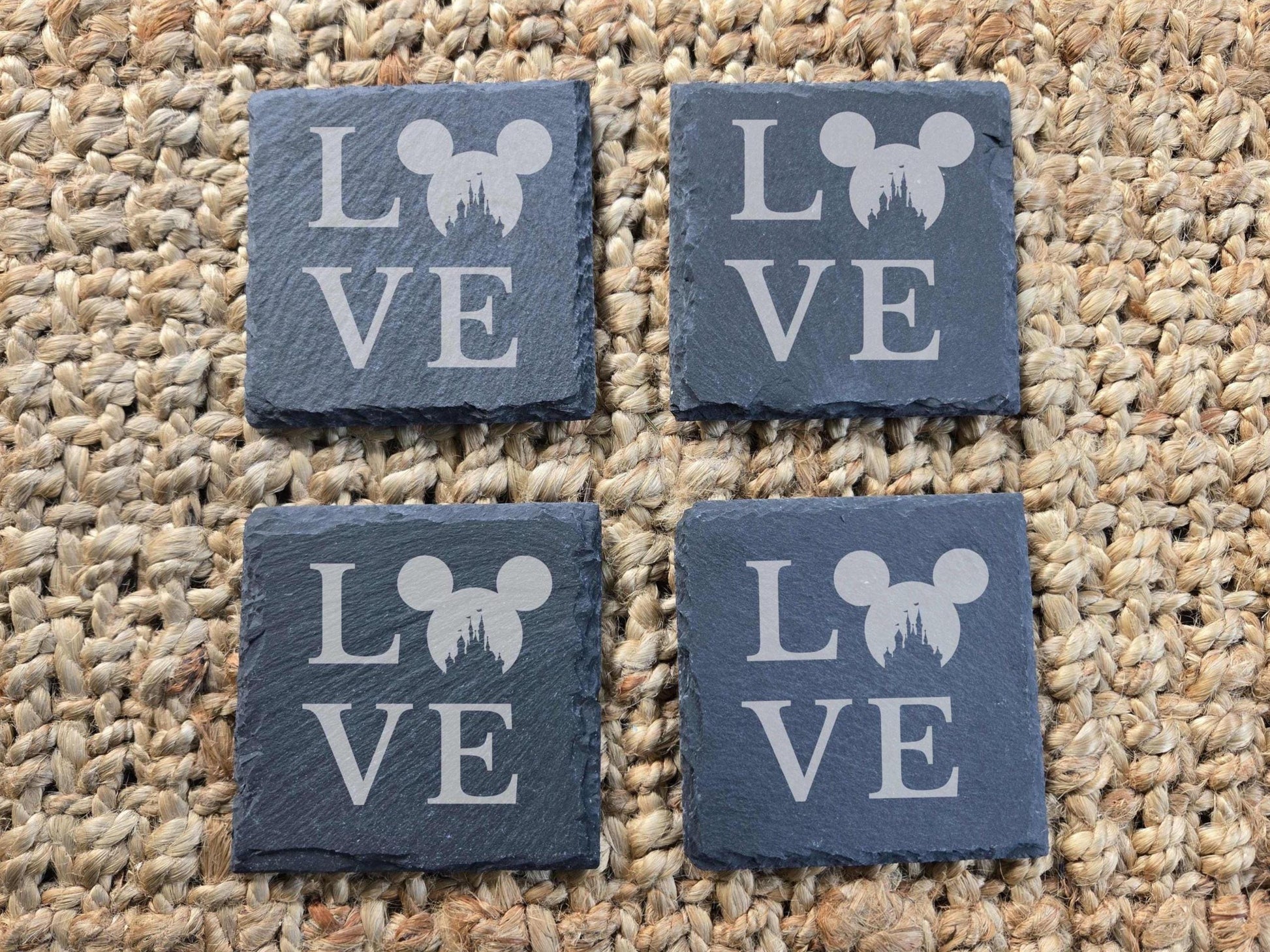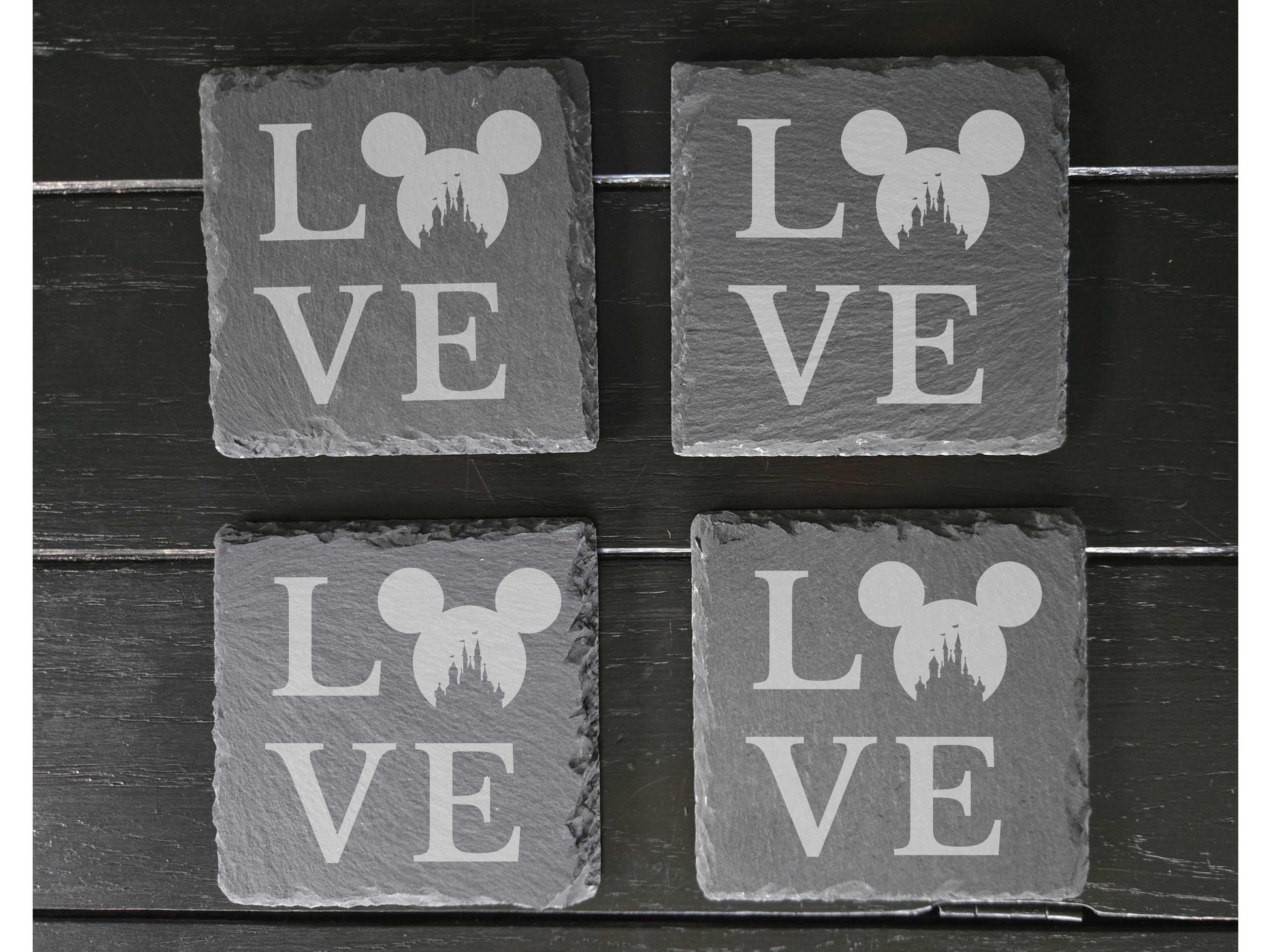 Love Disney Engraved Stone Drink Coasters, Set of 4