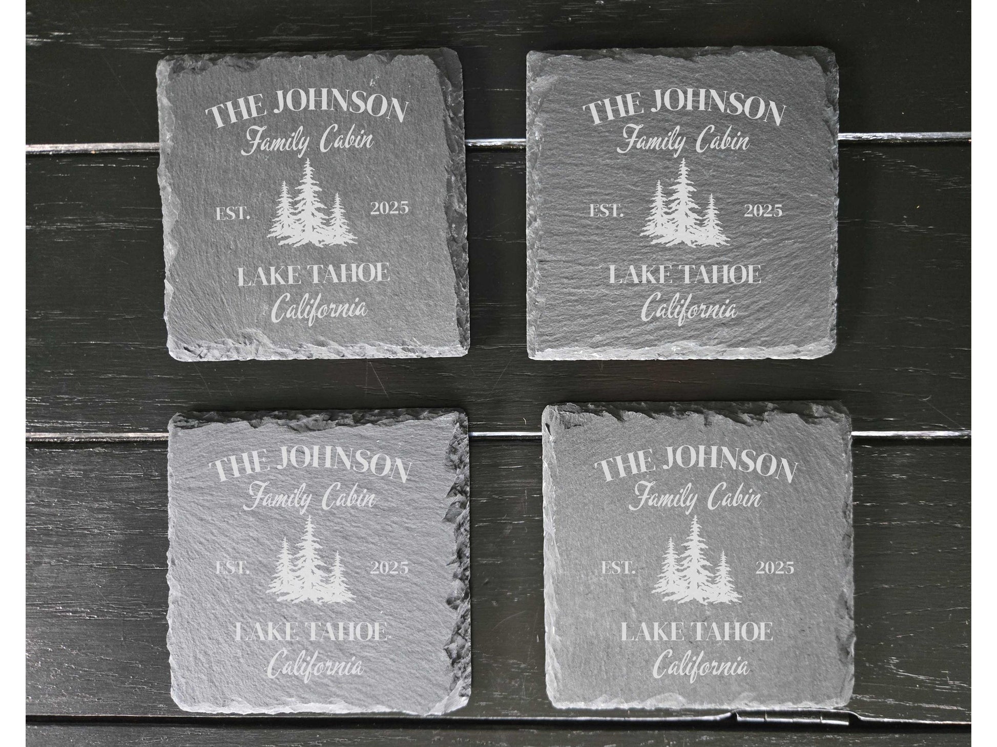 Personalized Family Cabin Stone Coasters