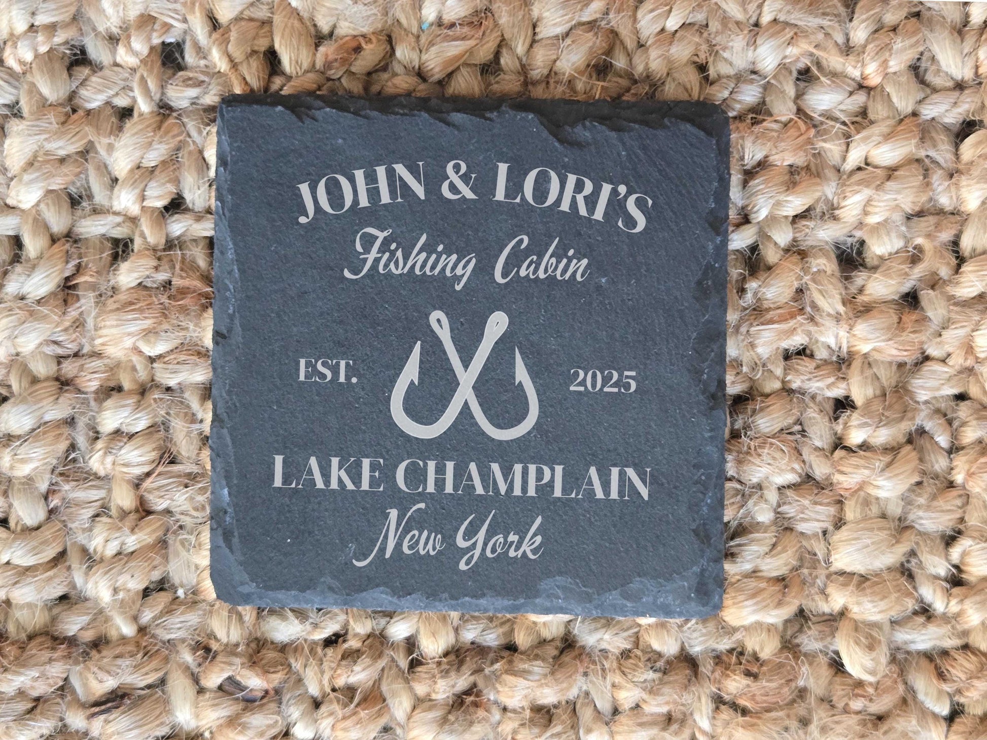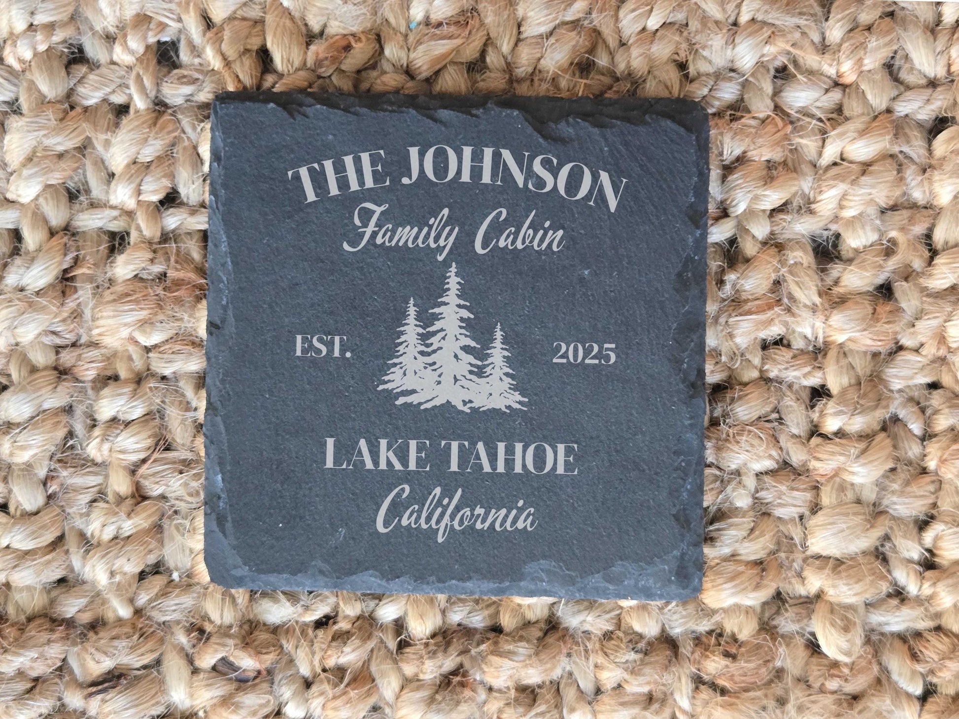 These make a great housewarming or gift for family cabin. Personalize with name, and location.