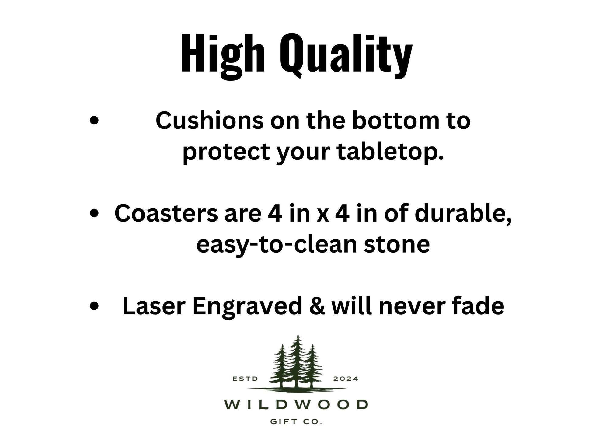Personalized Firefighter Stone Coasters, Engraved Gift for Fireman or Firewoman