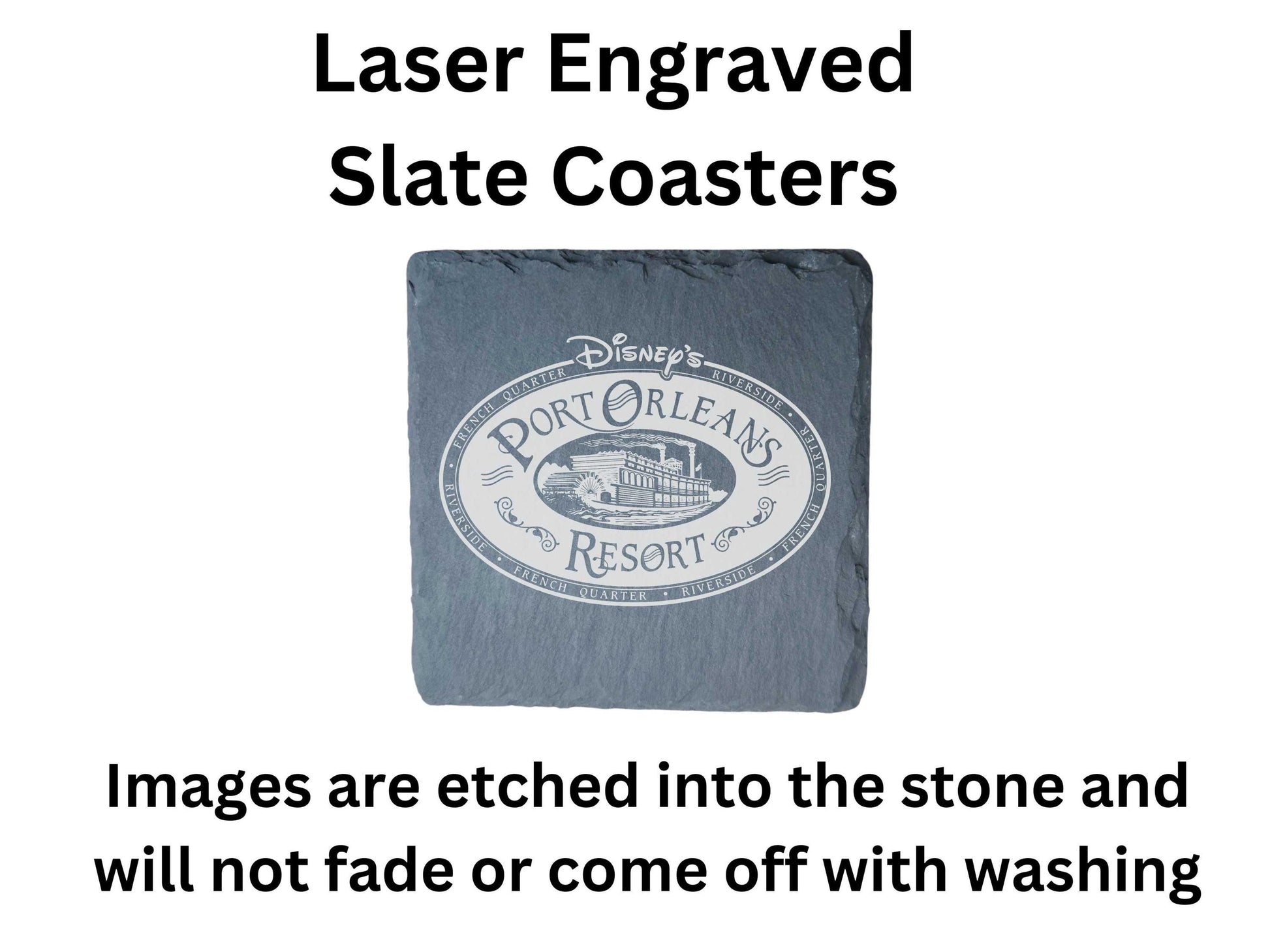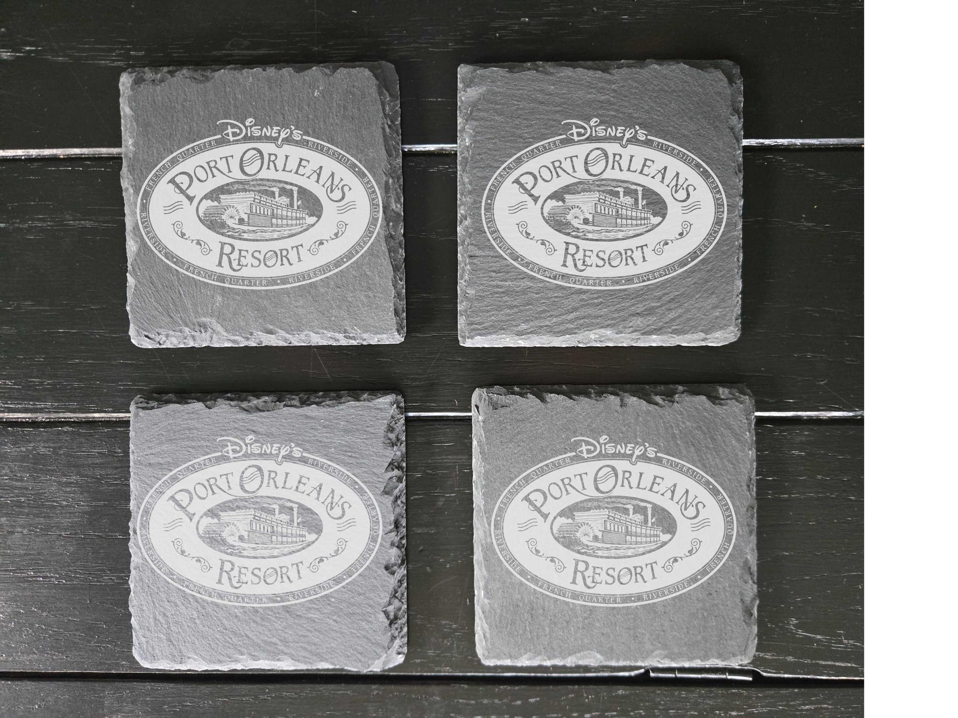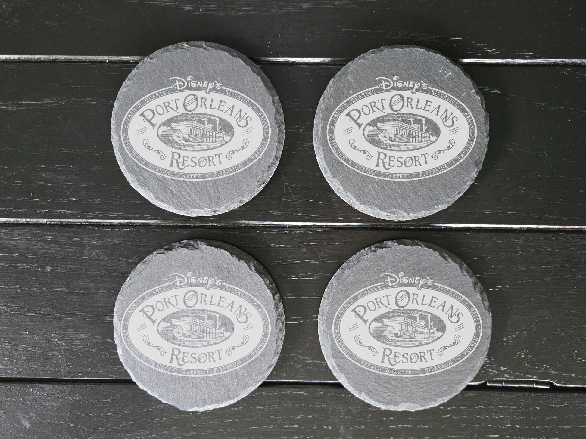 Four engraved Port Orleans Resort stone drink coasters! Choose between round or square. Perfect gift for those who love Disney World Resorts