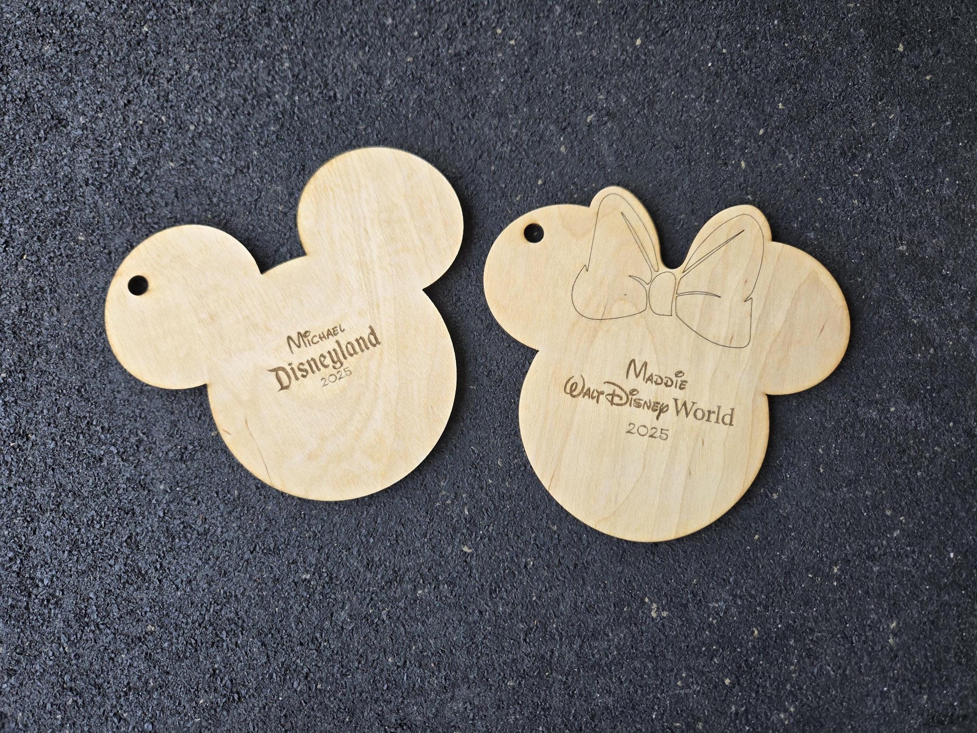 Capture the magic of your Disney trip with this engraved wood autograph card shaped like Santa Mickey, Mickey or Minnie Mouse. Perfect as a keepsake or Christmas ornament!