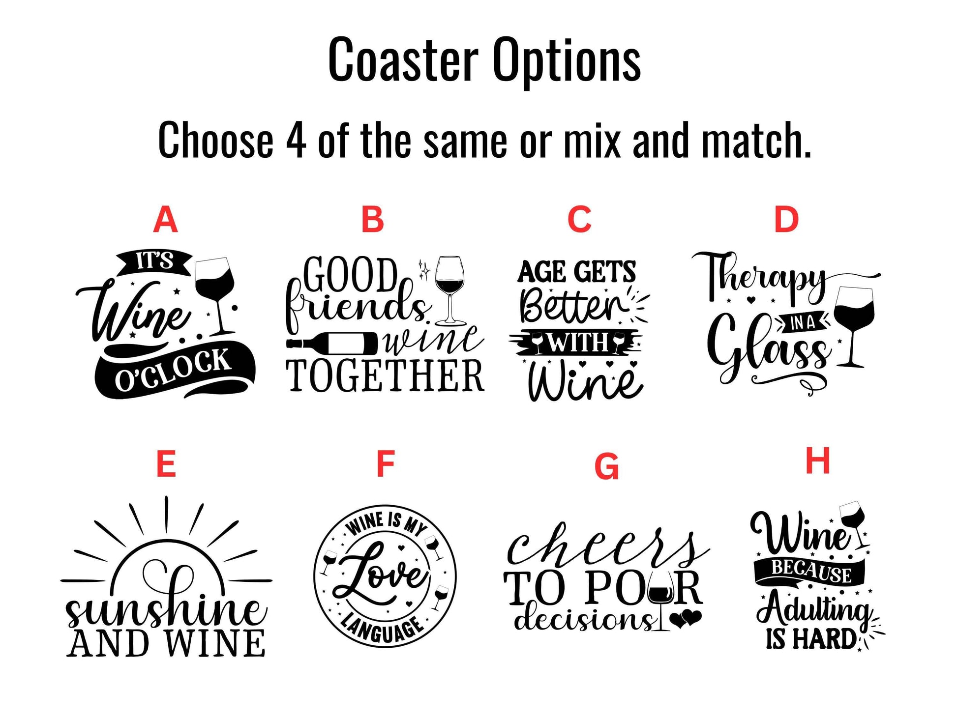These fun cork coasters make the perfect gift for wine lovers! Choose any 4 from 8 witty wine-themed designs. You can get four of the same or mix and match.