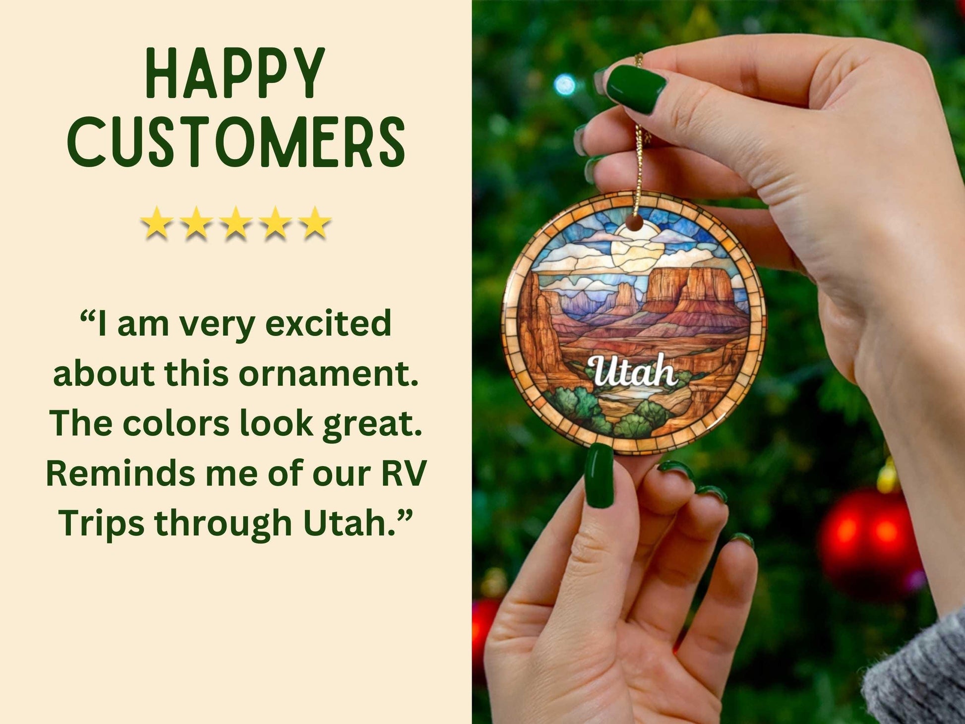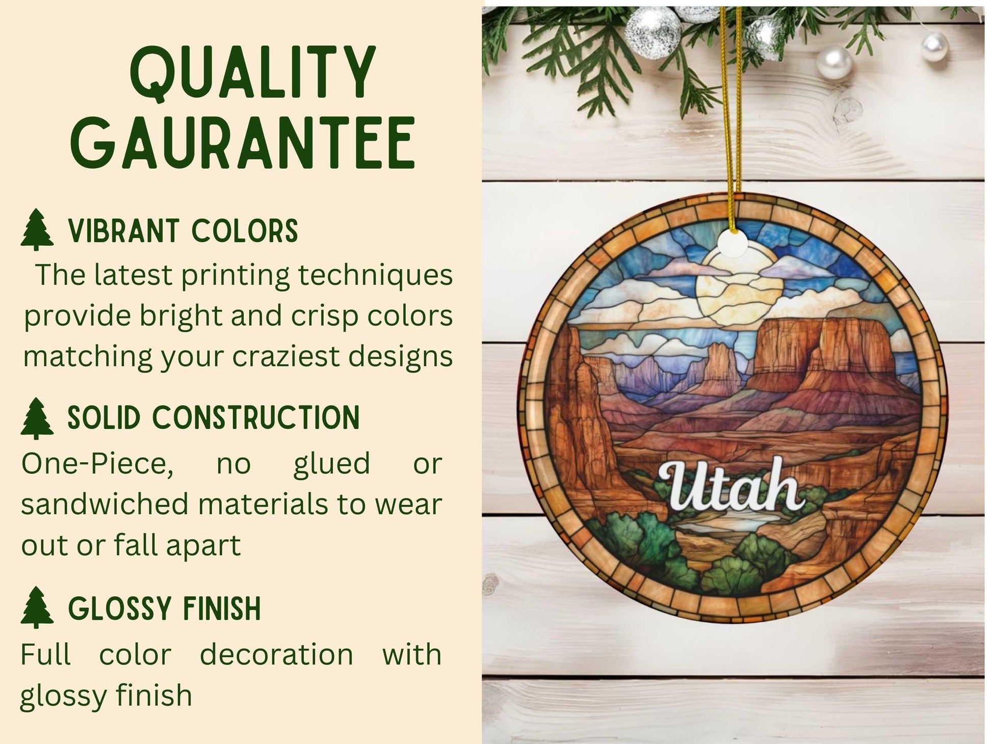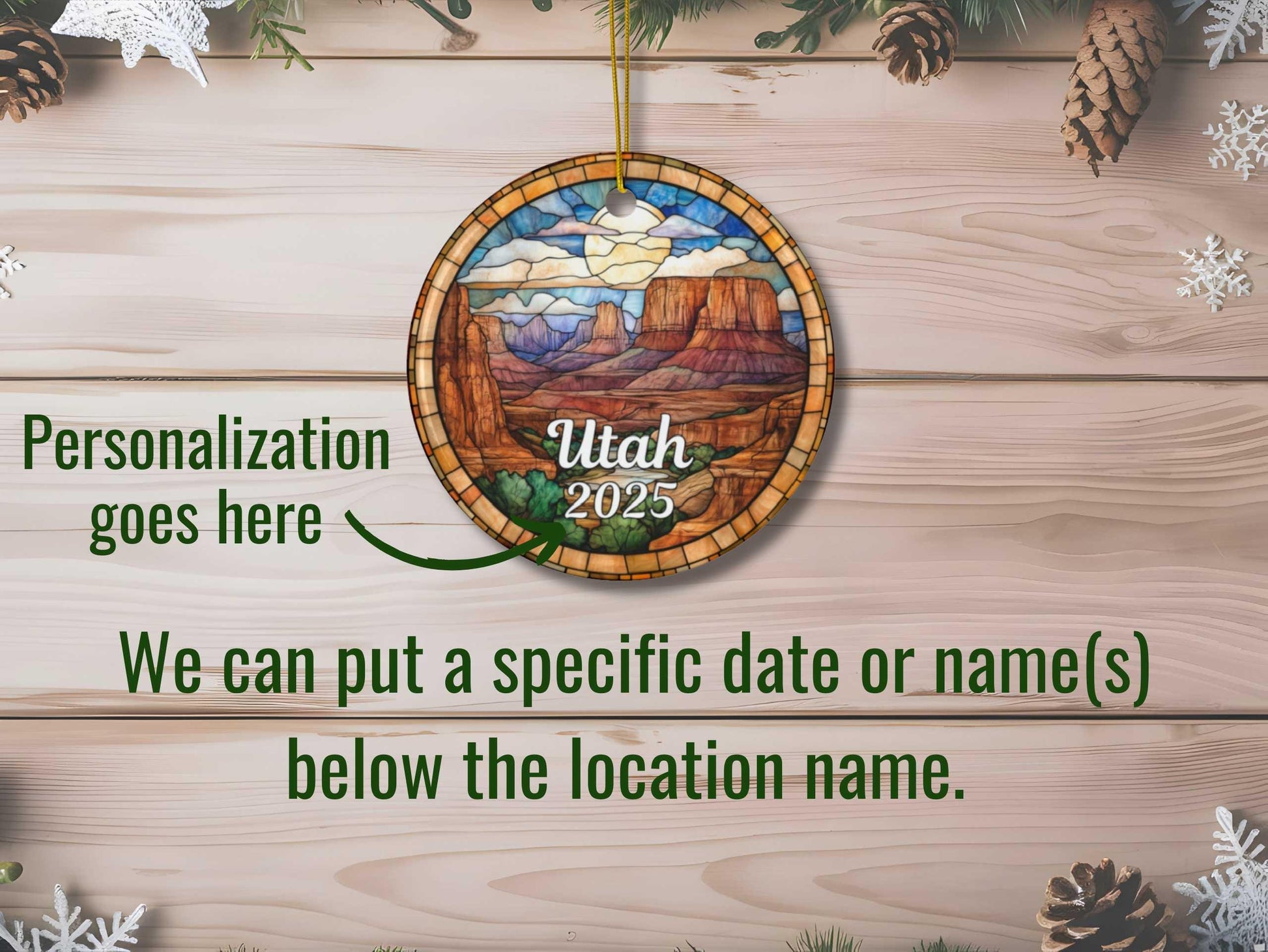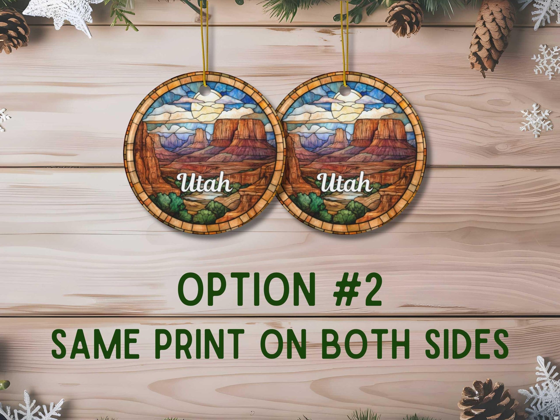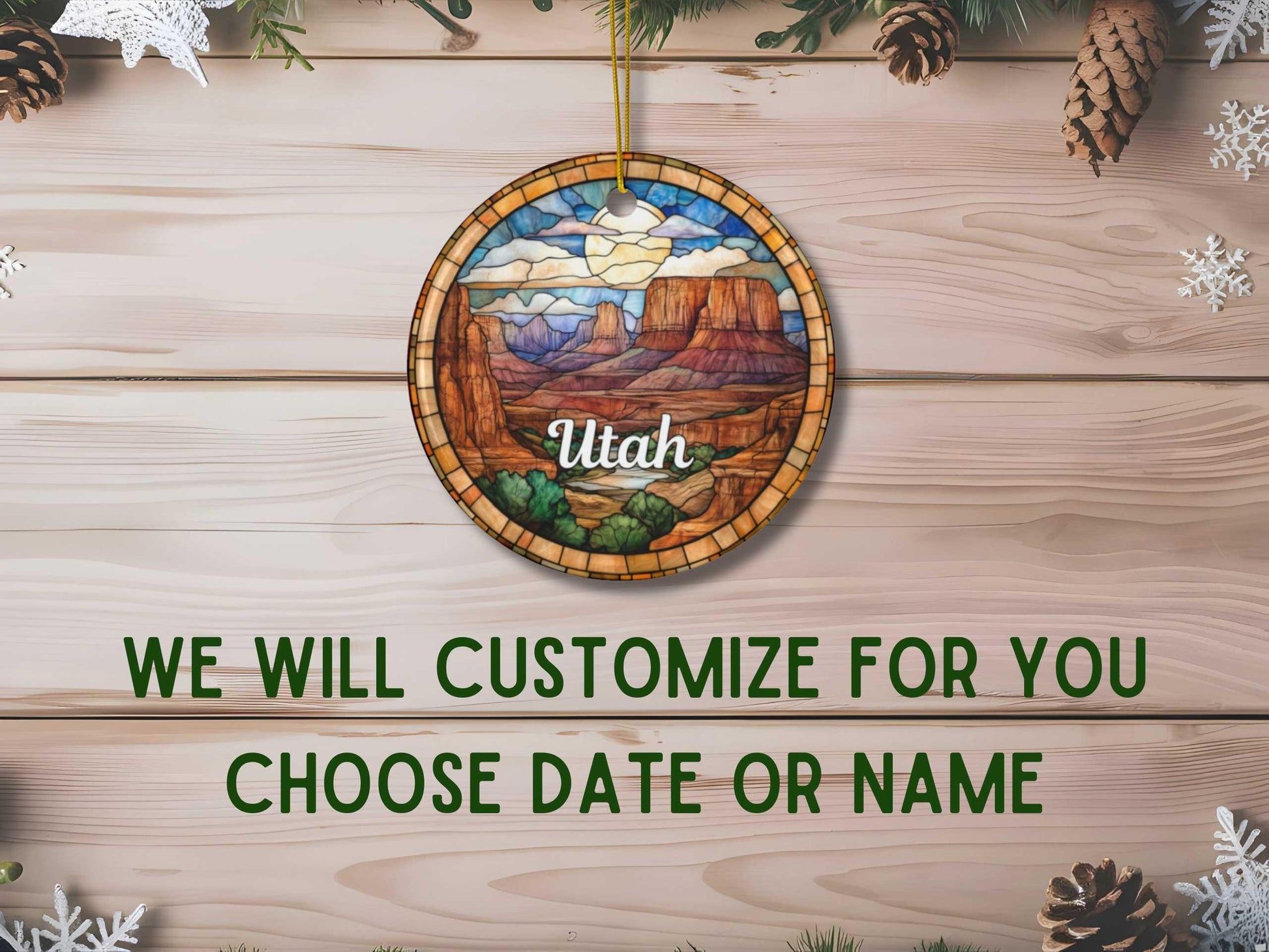 Stunning faux stained glass ornament of the Utah Desert. We will personalize, just let us know what you would like printed on your ornament. The personalization will go below the Washington text and be on both sides if you choose the double-sided option.